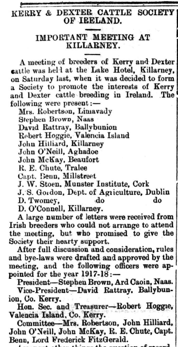 I usually like to start these articles with a picture of a Dexter cow from the past, that will be the focus for the historical adventure, as we travel back in time. But sadly, this time I have no beautiful and memorable cow to set the tone, as one could not be found for a lasting memory. Instead, I will show you a photo of Chute Hall. Chute house was thought to be built in the eighteenth century. In 1906 Chute Hall was documented to be owned by Rowland Chute. Rowland E. Chute owned it along with an additional house by the name of Leebrook House on the same estate. It remained in the family until 1930. Chute Hall was demolished in 1957 and no longer remains, but the memory of Leebrook House lives on in the Ballygarry House Hotel that has come to replace it. You could travel there for a nice stay in the beautiful hotel. Why is Leebrook significant? It was the herd name associated with Rowland E. Chute, who was a landed gentry in country Kerry. He was actually a judge for the Royal Dublin Society allowing Dexters to be entered into the herd books. The lack of history on his herd and the small bit of information that can be found is reveling to why the name of the Leebrook herd never took off.