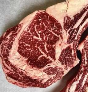 Fine intramuscular marbling is the hallmark of a high-quality ribeye.